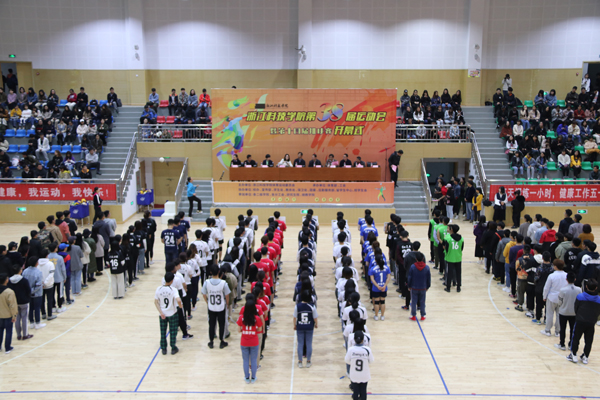 开幕式后,第十四届校排球赛开战。符宁平为比赛开球。