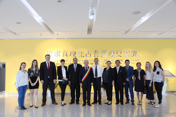 6月5日,罗马尼亚克鲁日教育代表团一行11人访问我校,赵东福、郑友取接待代表团一行。赵东福对代表团一行表示热烈欢迎,回顾我校克鲁日孔子学院的办学情况,并希望与克鲁日各类院校开展更多合作与交流。双方就合作开展汉语言学习、师生交流、高中与大学联合培养项目等进行了探讨。访问期间,我校与阿拉德奥莱乌拉依库大学签署了合作谅解备忘录。