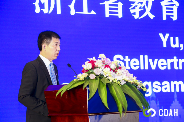 于永明代表浙江省教育厅向论坛大会的举行表示衷心祝贺。他指出,近年来,浙江高校不断加强国际合作,积极吸收国际先进教育理念,努力培养高层次人才,这其中,就有德国应用型高等教育的先进经验。于永明表示,已坚持12年的中德论坛已成为两国高等教育合作和人文交流的重要平台,希望与会的专家学者充分交流,共商校企融合新思路,共议应用型人才培养新模式。