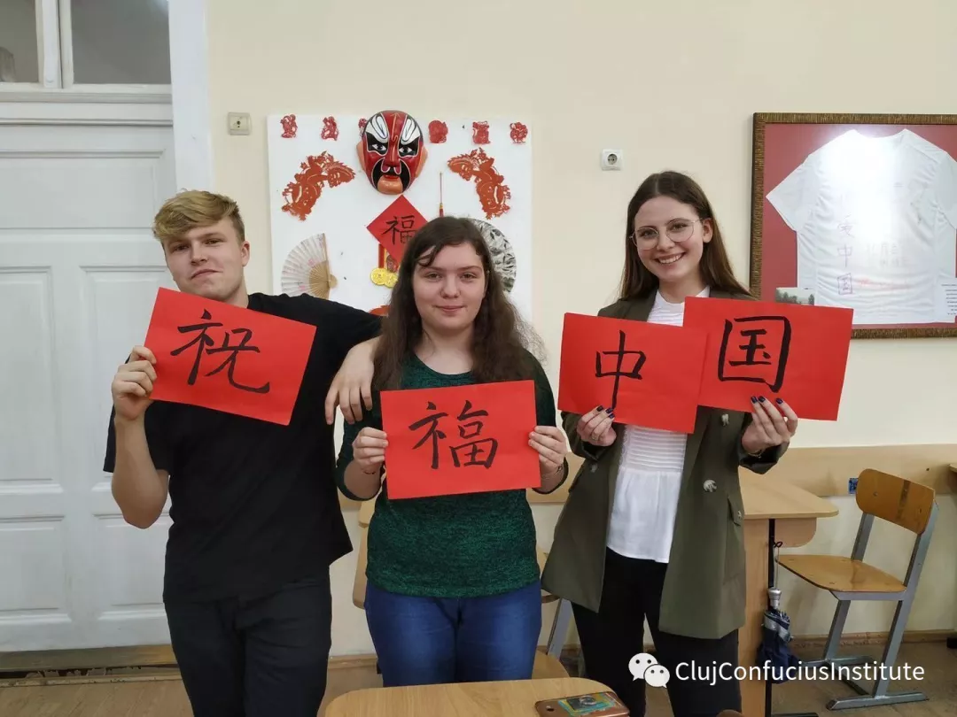 国庆前,罗马尼亚克鲁日孔子学院组织了一系列以庆祝中华人民共和国成立70周年为主题的文化活动,为祖国庆生。孔子学院教学点的老师们组织中罗师生共同书写的汉字“祝福中国”、中罗传统服饰秀等活动,为新中国成立70周年送上的一份真诚祝福。克鲁日孔院师生手持国旗,身穿传统服饰,参加罗马尼亚巴比什-波雅依大学百年校庆大游行。(克鲁日孔子学院 刘雪纯/文 刘九伶/摄)