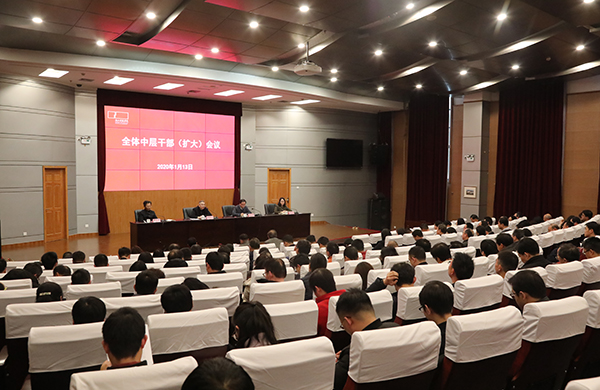 1月13日,学校召开中层干部(扩大)会议,回顾总结2019年工作,部署新年工作思路。校党政领导班子成员、校长助理出席会议。会议由校党委副书记符宁平主持。