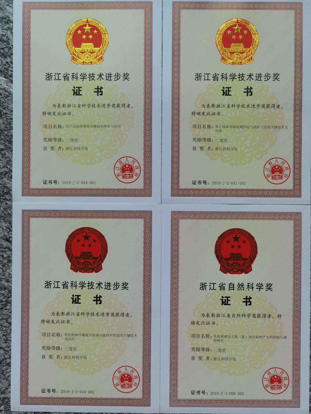 近日,2019年度浙江省科学技术奖评选结果正式公布,我校共有4项成果获奖,其中我校教师主持2项成果获科学技术进步奖二等奖,我校教师参与完成的2个项目获得三等奖。