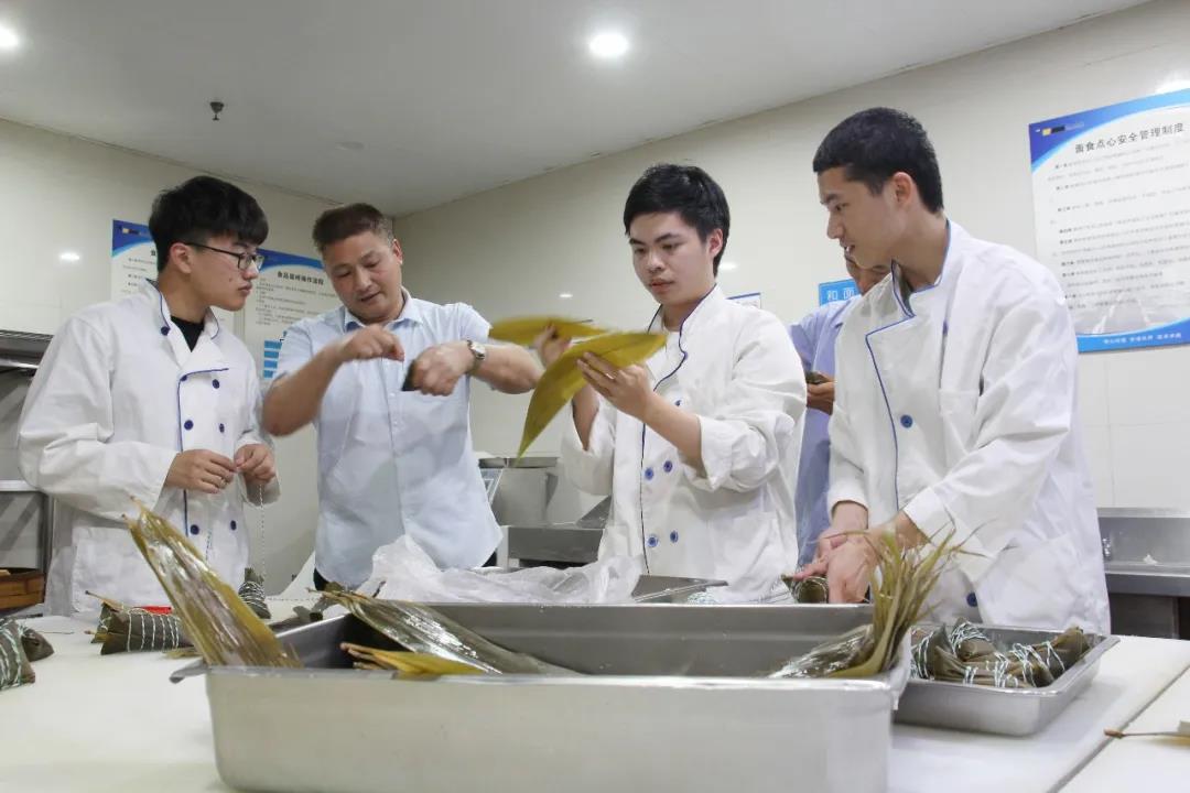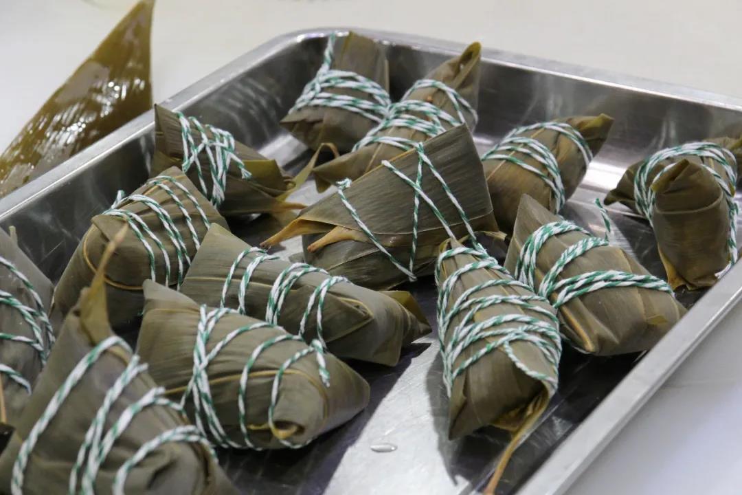 “端午”到,吃粽子,粽子好吃也要会包。安吉校区后勤党支部组织学生来到“寿师傅生活课堂”学习包粽子,回味传统习俗。捋粽叶、装糯米、放红豆、穿绳系紧,包粽子的必要“套路”,“寿师傅”们手把手教。香软糯米,甜美馅料,清香荷叶,每一颗粽子都是师生们纯手工制作,心意满满,“粽”含深情。