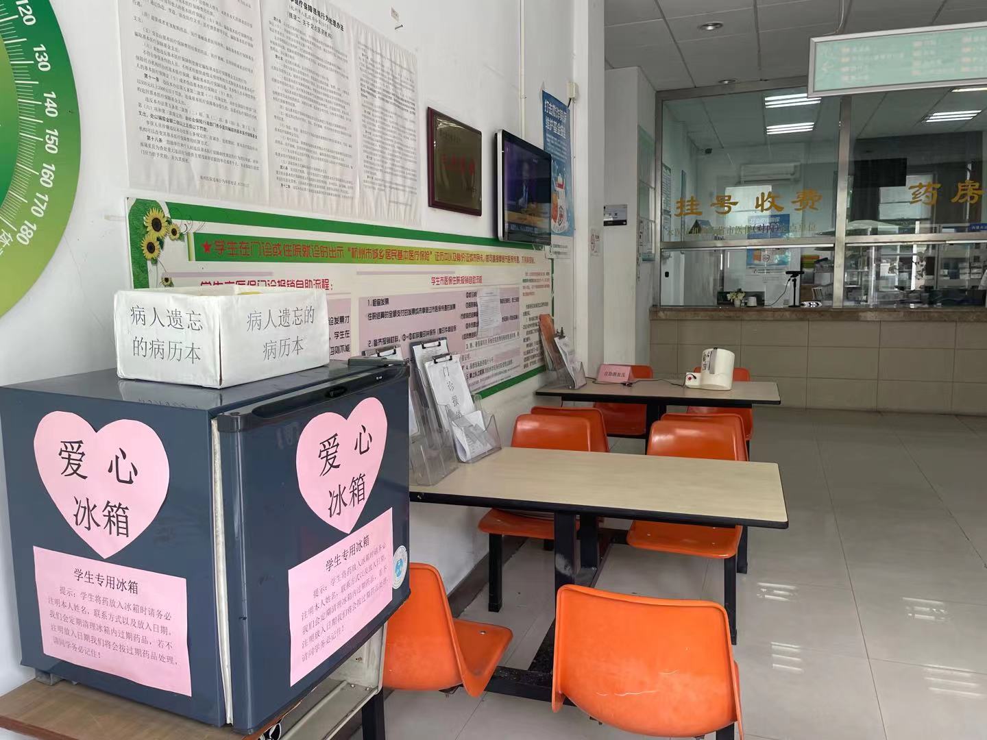 卫生所设立“爱心冰箱”,对学校师生免费开放使用,安排专人做好药品登记及保管,解决师生、员工自配药品(如煎好的中药)无处冷藏放置的苦难。