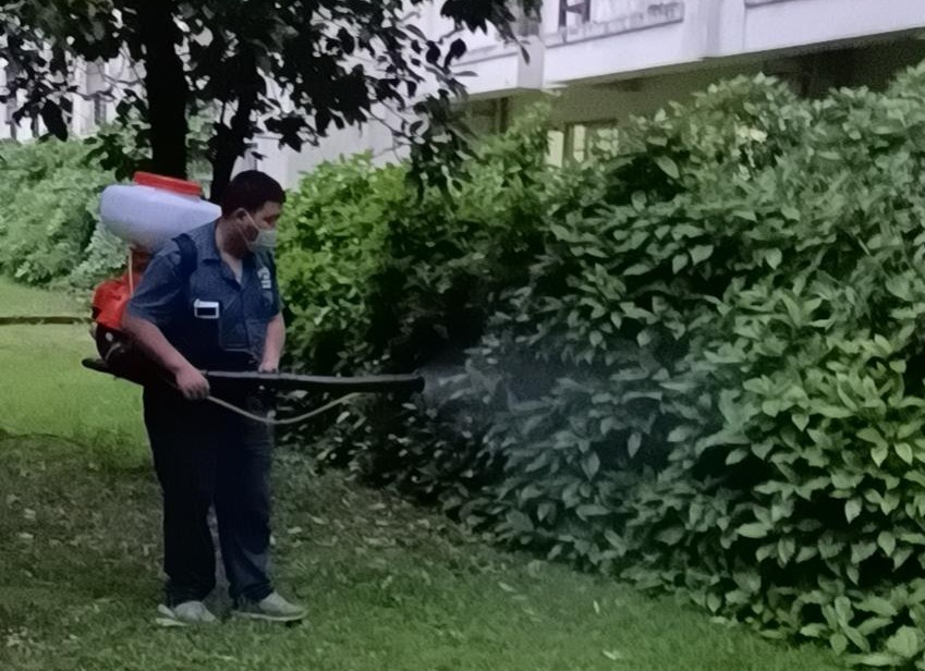 进入梅汛期,校园蚊虫泛滥,物管中心及时对接专业除“四害”单位,对教学区、公寓区等重点位置进行集中喷洒药水灭虫,并对公寓区楼宇周边茂密灌木进行集中清理,改善师生教学及住宿环境;临近毕业季,小和山校区西蜜湖临湖种植玫瑰花带,营造美丽温馨有温度的“毕业季”校园环境。