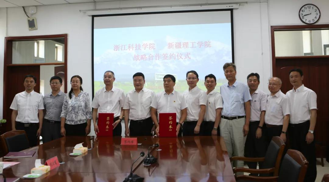 陈海涛肯定两校合作是贯彻落实第三次中央新疆工作座谈会精神、完整准确贯彻新时代党的治疆方略的生动实践,也将有助于推动新疆理工学院高质量、跨越式发展。他表示,新疆理工学院的建成和快速发展,凝聚了包括浙江科技学院在内的浙江高校系统的倾力援助。两校学科专业特色共性较大,应用型人才培养定位相互匹配,存在较大合作领域和对口支持空间。希望两校以本次签约为新起点,共创浙阿两地高校合作典范,进一步把浙江援疆工作打造成为“重要窗口”示范样板,助力浙阿两地经济社会高质量发展。