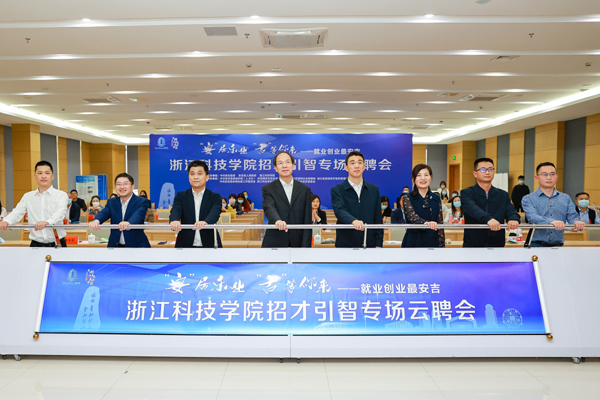 近日,学校联合中共安吉县委、安吉县人民政府举办2022年毕业生专场云聘会活动,活动设安吉主会场和学校分会场。校党委副书记周加敏,安吉县人民政府副县长程文伟在安吉主会场出席会议。