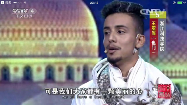 图一:亚当赛后和主持人评委合影