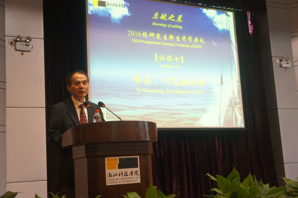 9月27日上午9点27分,“启航之晨”2016校研究生新生开学典礼在图书馆西报告厅举行。校长叶高翔出席本次典礼。校党委委员、研工部部长毛建卫教授与罗马尼亚籍留学研究生谭明爱主持典礼。