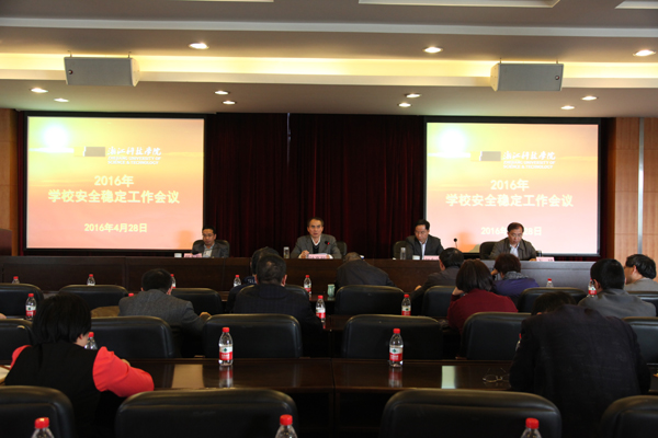 4月28日,我校召开2016年度安全稳定工作会议。校长叶高翔、副校长郑友取、万健出席。校党委副书记赵东福主持会议。