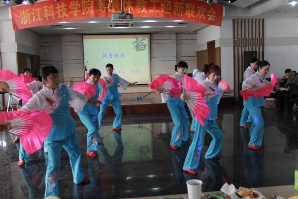 活动中,大家观看视频集锦一起回顾了2015年开展的各项离退休教职工活动。随后,精彩节目一一登场,舞蹈《大地飞歌》、合唱《走向复兴》、《南泥湾》,诗朗诵《浙科院建校35周年礼赞》,自创歌曲《抗战精神》以及独唱、二重唱、独奏、书法表演,节目各具特色,精彩纷呈,学校艺术教育中心的同学和杭州快乐柔力球队也带来精彩节目助兴为团拜会带来了精彩的文艺表演,现场喜气洋洋。