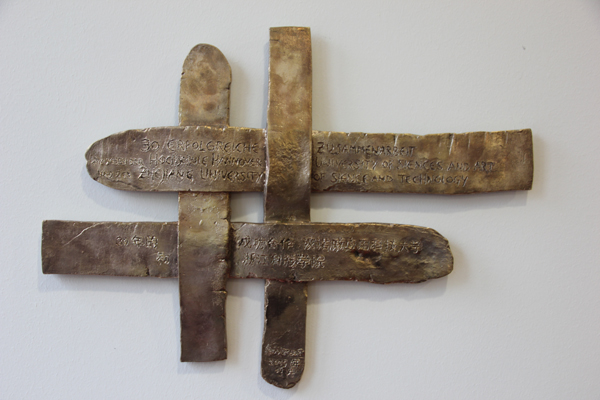 该雕刻作品由汉诺威应用科技大学艺术学院教师于尔根·绍尔茨(Jürgen Scholz)设计并创作,其设计灵感来源于中国结的编织过程。作品将由汉诺威应用科技大学赠送我校,并置于我校中德友谊园中。