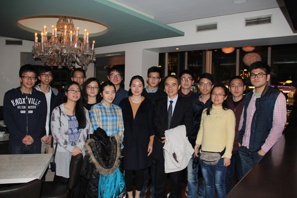 访问中,代表团成员还看望了我校在汉诺威应用科技大学和米兰新美术学院学习的学生。叶高翔勉励学生要充分把握在国外的学习时间,努力学习,不断提高个人的专业水平和外语水平。
