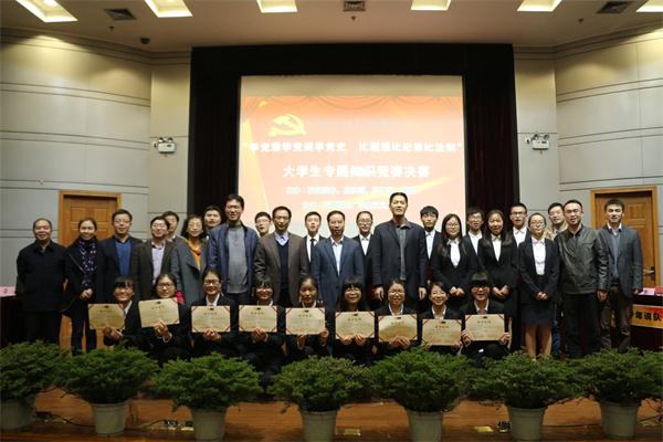 11月18日,我校“学党章、学党规、学党史,比理想、比纪律、比法制”大学生专题知识竞赛决赛在小和山校区图书馆西报告厅隆重举行。校党委副书记赵东福、校纪委书记李泽泉出席并为获奖队伍颁奖。相关部门负责人,二级学院副书记、纪检委员、组织员,学生代表等观看比赛。