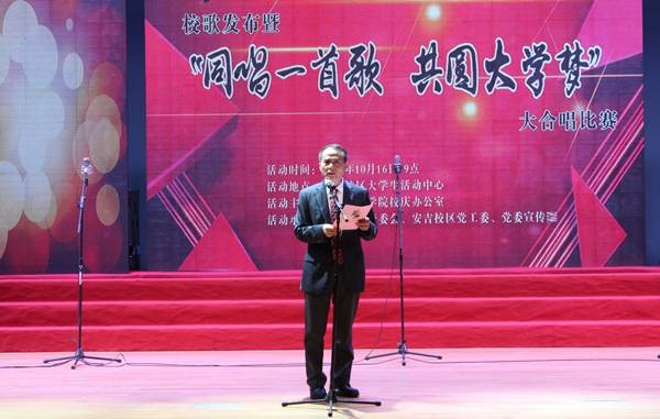 校党委副书记赵东福宣布校歌正式发布。学校微信公众平台随即首发,现场师生同传校歌。