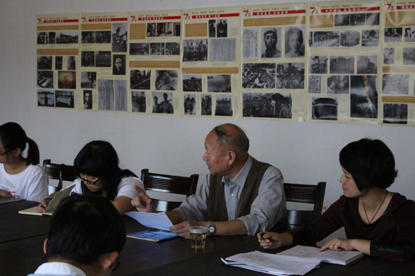 7月7日至11日,校中研会成员来到新昌。7月7日正值卢沟桥事变78周年,小分队寻访抗战遗址警钟山碑亭以及新北区革命纪念馆。学生采访了新昌县“夕阳红”讲师团副团长、新四军历史研究会理事俞百忍,新昌县新四军历史研究会常务副会长陈伯和,新昌县关工委主任俞辉华,曾担任过新昌县委书记、县长、县人大常委会主任的新昌县新四军历史研究会会长、关工委副主任杜月中等4位经历过战争硝烟的老人,回顾那段艰苦卓绝的历史。青年学生参加了由县委宣传部、县委老干部局、县史志办、新四军历史研究会、县关工委共同举办的“纪念抗日战争胜利70周年座谈会”。学生还来到新昌县林泉轴承有限公司,向参加该公司假日爱心课间的孩子讲述有关抗战故事,帮助小朋友了解抗战历史,增强爱国意识。