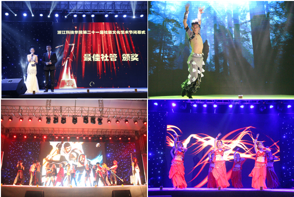 闭幕式晚会上,科技创新类、绿色环保类、公益实践类、文化艺术类、体育健身类各社团为现场观众献上精彩的节目,充分展现了新时期大学生的青春风采。LEF街舞社以《funk u up》直接点燃现场气氛,水墨丹青剧社的小品《舅舅的考验》则以幽默风趣和精湛演技让现场笑声连连,舞蹈社的舞蹈、吉他社的弹唱、In 动漫社的Cosplay表演等一次次引爆现场。晚会还通过视频对我校各级各类社团一年来取得的成绩进行了展示,并对2014年省优秀社团、校十佳社团、最佳社管等先进进行了表彰。