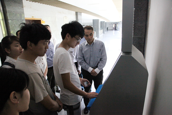 经半年多建设,近日学生自助打印服务系统试运行。5月21日中午,校长叶高翔亲自摁下启用键,启动该系统。相关职能部门负责人和学生代表参加。学生当场通过一卡通、身份证登陆系统,打印出自己的成绩单。