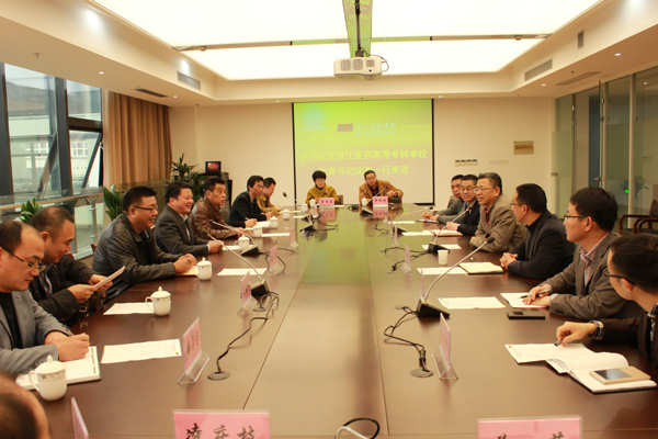 王建华首先对浙江医药高等专科学校的来访表示热烈欢迎,就未来安吉校区学科布局、中德工程师学院的建设发展以及国际交流合作等做了重点介绍,并对浙江医药高等专科学校新校区建设表示良好的祝愿。鲁伟权简要介绍了安吉校区整体建设情况。两校就新校区项目建设、前期规划、建筑布局、管理模式、学科设置等深入交流,探讨校地合作办学的相关事宜。两校表示要加强联系,共谋发展。学校相关职能部门负责人参加交流。