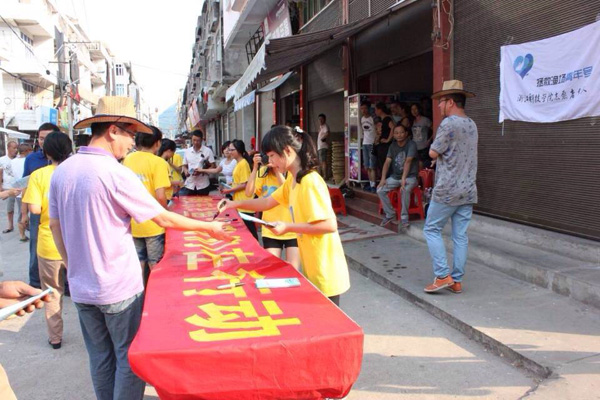 “东海无鱼”就是“蓝色国土”荒漠化,是浙江之痛、当代之患,破解海洋资源衰退问题刻不容缓。为积极响应省委、省政府关于渔场修复振兴计划及海洋伏季休渔管理工作会议的号召,我校在暑期实践中开展拯救渔场活动,亲渔小分队于8月1日至7日来到温州苍南县进行为期一周的社会实践。7天里,17位来自各学院的师生来到苍南县马站镇霞关村、渔寮村、木林村、北关岛等乡村,走进渔民、走进涉渔企业、走进行业协会实践调研。通过制作并发放渔场修复宣传资料,创作推广保护渔业资源、宣传渔场修复振兴微电影等,并利用微博、微信等平台开辟专栏、微话题等形式,向渔区百姓和社会公众宣传“东海无鱼”的严峻性、“竭泽而渔”的危害性、“渔场修复”的重要性。实践活动受在当地引起积极响应,仅“保护东海,人人有责”倡议横幅,在霞关村两小时就收到上百位民众的签名。