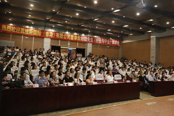 6月25日下午,真维斯国际(香港)有限公司董事长杨勋来校,为师生们作题为《创业与守业》的专题报告。图书馆西报告厅座无虚席,校党委副书记周加敏与相关职能部门和二级学院负责人、辅导员代表及400多名同学聆听报告、浙江电视台、杭州电视台等多家新闻媒体到场采访。
