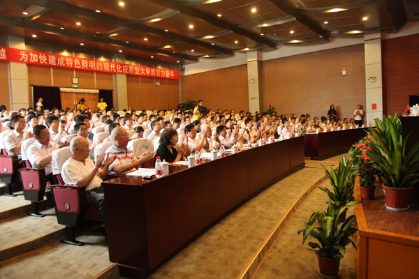 王建华强调,今后五年是学校建设特色鲜明的现代化应用型大学,实现“大学梦”的攻坚阶段。学校发展的主要任务是突破更名指标,彰显办学特色,完善治理体系,提升大学文化。学校改革发展的主要举措是:树立现代大学理念,不断增强学校发展的引领力。加强现代大学内涵建设,不断增强学校发展的核心竞争力。深化现代大学体制机制改革,不断增强学校发展的内在活力。加强现代大学文化建设,不断增强学校发展的软实力。