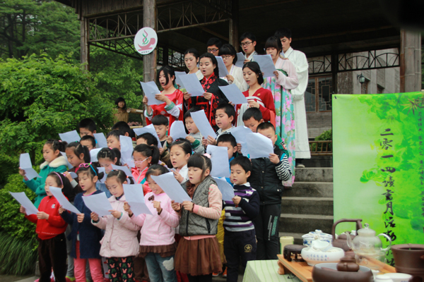琴瑟和鸣,茶香习习……4月20日上午,首届新茶文化展、茶文化宣传日活动在美丽古朴的“和风居”拉开帷幕。杭州卖鱼桥小学文澜校区的二十多名小朋友以及他们的老师、家长一行近60人也参加了这次活动。