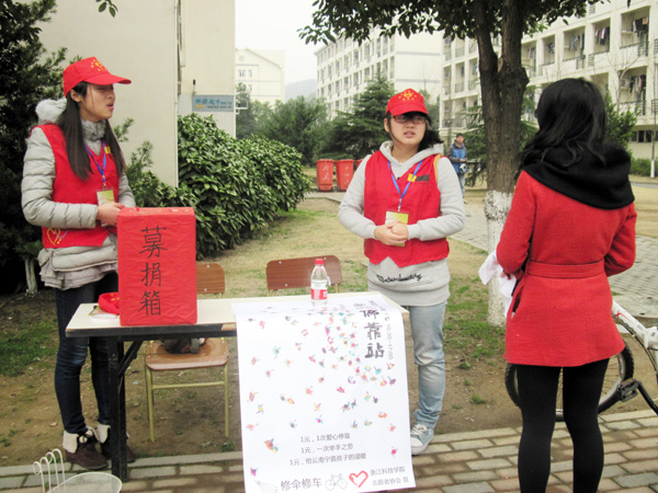 5日当天,各学院志愿者协会联手在西和、东和公寓开展活动(图2)。校志愿者协会修理自行车、经管学院清洗眼镜、生化学院食品安全宣传……志协和各学院亮出自己的传统项目近距离服务师生。据悉,全校学生还将开展网络文明志愿服务活动、用心停放车(信息学院)、公交安全走(理学院)、清理课桌美化教室(轻工学院)、走进敬老院(中德学院)、零钱时光机(电气学院)等系列活动。与往年相比,今年的绿色生态志愿服务活动吸引了更多同学参与,建工学院的“地球一小时”、机械学院的“寄送环保明信片”、校志协的“节水净水、绿色校园”等生态宣传实践活动,引导同学参与校园生态文明建设。校志协以身作则,提倡环保,此次活动宣传海报均由同学们手绘而成(图3)。驻足观看海报的同学纷纷表示,手绘海报更能体现同学的创意和心意,省下的钱还能多搞一些活动。