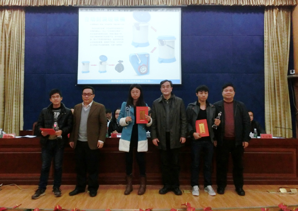 12月8日,第四届“中荣杯”全国大学生包装结构设计大赛颁奖仪式举行。我校包装工程10级董佳禾和11级颜孙胜、郁晓川同学设计的作品“自动封袋垃圾桶”获一等奖。