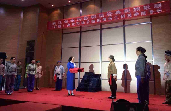 11月24日下午,浙江金永玲歌剧院大型现代歌剧《江姐》走进我校,为广大师生送上了一场洋溢着红色革命激情的视听盛宴。校党委副书记周加敏和四百余名师生观看了演出。