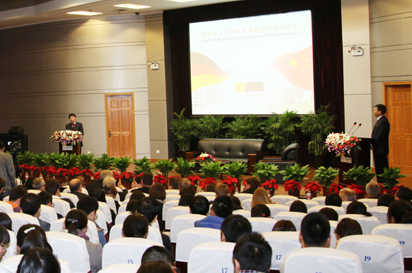 11月19日,德国石荷州州长托尔斯滕•阿尔比希(Torsten Albig)一行访问我省。省委书记、省人大常委会主任夏宝龙会见并宴请了代表团一行,我校党委书记王建华教授参加会见和宴请。21日,阿尔比希一行莅临我校访问。省委教育工委副书记、省教育厅副厅长蒋胜祥,省外办副主任顾建新及我校党政班子成员出席欢迎仪式。阿尔比希、蒋胜祥、我校校长叶高翔及随石荷州代表团来访的吕贝克应用科技大学副校长利兹分别致辞。欢迎仪式由我校党委副书记陈根芳主持。
