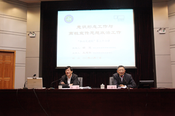 10月17日晚,和山大讲坛第36讲开讲,省委宣传部常务副部长胡坚受邀作“意识形态与高校宣传思想政治工作”专题辅导报告。校党委书记王建华主持报告会。校党政领导班子成员出席会议。全体中层干部,各单位办公室负责人,全体辅导员和社科部教师,师生代表近300人聆听了报告。