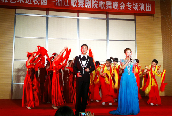 9月29日晚,由浙江省教育厅、文化厅、财政厅共同主办的“高雅艺术进校园”活动——浙江歌舞剧院歌舞晚会专场演出在我校举行,600多名师生一起度过了一个美妙的音乐艺术之晚。
