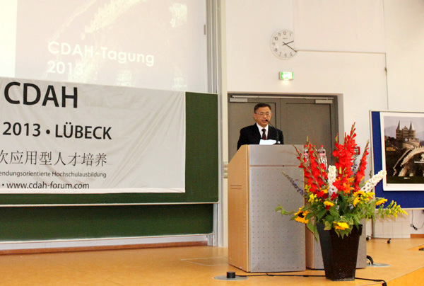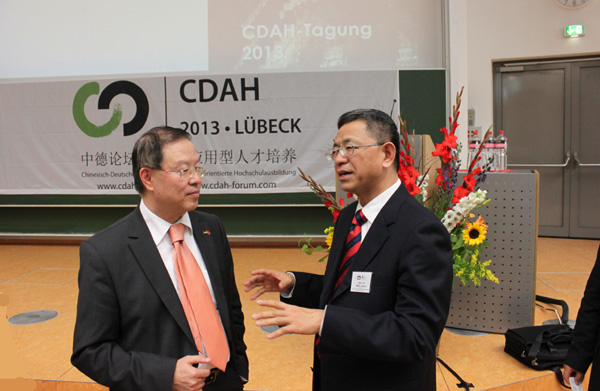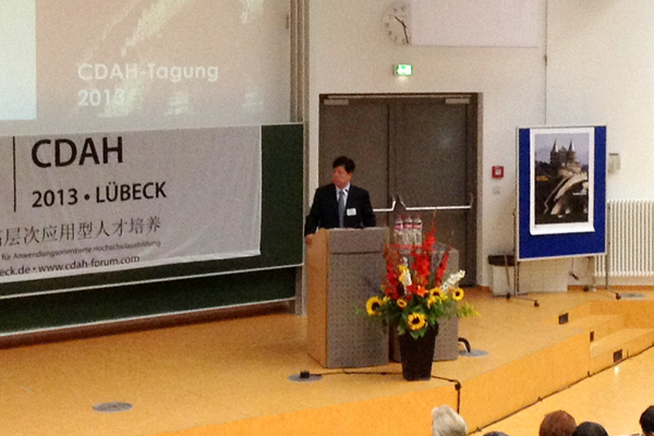 9月11日至13日,“中德论坛:高层次应用型人才培养(CDAH)”第四届论坛大会在德国吕贝克应用科学大学举行。中国驻汉堡领事馆总领事杨惠群、中国教育部国际合作与交流司正司级巡视员刘宝利及发展规划司副司长郭春鸣等出席会议。德方14所大学及教育机构、中方16所高校共150余名代表参加。我校党委书记王建华率相关二级学院、教务处、发展规划处、德国埃尔福特孔子学院负责人及国际处共9人参加论坛。