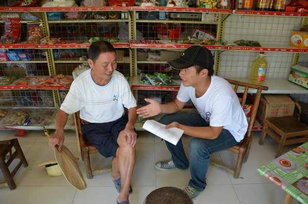 图2 村民们在回答“新农村建设中农民的人文素质与生活转型现状”调查问卷
