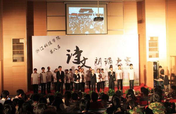 本次大赛由大学生文化素质教育基地、校团委、教务处、语言文学学院主办。选手们用诗歌展现了大学生朝气蓬勃、积极向上的精神风貌,也宣誓了同学们用理想托起“中国梦”的决心。