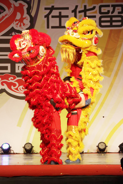 在首日举行的民族传统体育展示项目比赛中,复旦大学的南刀表演夺冠,我校8名留学生表演了精彩的中国传统舞狮,4名男生将红黄两只雄狮舞动得威风八面,栩栩如生,4名女生敲锣打鼓配合完美,获得亚军。