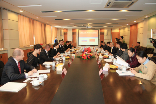 11月15日,斯洛伐克日利纳自治州州长、斯洛伐克共和国国会外事委员会副主席犹拉耶•布拉纳尔先生(Juraj Blarnar)、斯洛伐克共和国驻上海总领事帕沃尔•希考勤(Pavol Sykrcin)、日利纳大学校长塔蒂安娜•佐瑞可波娃(Tatiana Corejova)等一行9人访问我校。我校副校长吕进热烈欢迎了来访客人,机械学院、电气学院、经管学院、学校办公室及国际交流合作处相关负责人出席欢迎仪式。
