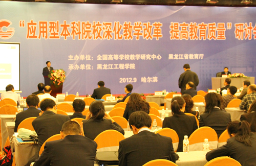 9月27至29日,应用型本科院校贯彻落实全面提高高等教育质量的若干意见、深化教学改革高层研讨会在黑龙江举行。我校副校长赵东福代表学校出席,教务处负责人参加会议。本次会议由全国高等学校教学研究中心主办,黑龙江工程学院承办。来自全国各地20余所地方高校的校领导、教务处处长等60多名代表参加会议。