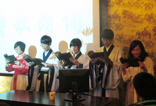 大学生文化素质教育基地自2007年成立以来,一直将“以经典传统文化引领大学生认识、追求真、善、美”作为行动指南,每年一次的孔子文化节、经典诗文朗诵大赛、人文科学知识大赛、读书月、新年诗会、话剧表演等形式多样的文化活动,引领同学们走进经典、了解经典、感受经典的魅力。不少留学生也来孔子学堂品茶、赏古琴,沾沾“中国味”。据悉,第五届孔子文化节将在近期举办。