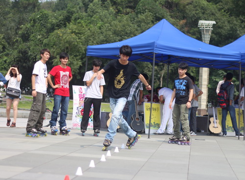 招新现场,各社团通过形式各样、新颖独特的方式将自身的特色文化展示得淋漓尽致。全国十佳创业俱乐部、校大学生KAB创业俱乐部在展台前展示创业文化;极速轮滑协会的成员身着个性服饰,在节奏鲜明的音乐声中表演酷炫的轮滑;体育舞蹈协会的成员在欢快的音乐中,踏着恰恰的舞步,跳出了自己的风采,展示体育舞蹈的美;in动漫社成员惟妙惟肖的cosplay则仿佛将所有人带入了一个华丽的动漫世界。