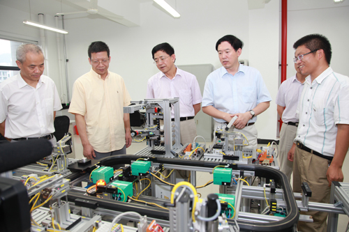 在实地参观视察和听取汇报后,徐辉作了讲话。在教师节即将来临之际,他首先对我校全体教师致以节日的问候。徐辉说,近年来,经全校师生共同努力,浙江科技学院学校面貌发生了很大的变化。不仅在硬件条件建设上取得了显著的成绩,更重要的是在内涵建设上有了长足发展,在某些学科建设上达到了相当的水平,实为不易,并对我校通过引进国际大公司资源建设有特色、有较高水平的实验室的做法表示赞赏和肯定。他强调,当下我省经济社会发展要求高校更多地与企业、行业对接,为经济转型升级提供更强大的人才和智力支持。学校要鼓励学科、教师进一步与产业合作,进一步做出品牌。徐辉指出,目前学校发展已经到了一定的规模,未来应该始终坚持以教师为中心,将提高教育教学质量、人才培养质量放在核心地位,推动学校又好又快科学发展。徐辉说,多年来,浙江科技学院坚持学习德国应用科学大学人才培养经验,在高层次应用型人才培养上形成了自己鲜明特色,这正符合当前国家对人才的需求。学校要继续坚持发展定位,不断强化办学特色,发挥自己的优势和特色,为经济社会发展输送更多合格人才。他表示,从浙江建设教育强省的高度出发,对我校这样符合浙江经济社会发展需要,办学特色比较鲜明的高校将予以更多关注、更大支持。
