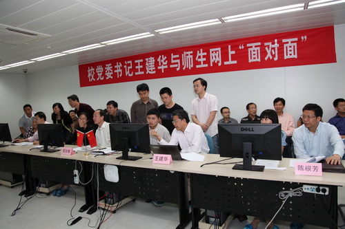 5月30日下午,校党委书记王建华通过网络平台,与师生网友进行了2个小时的在线交流活动,就包括组织工作在内的学校各项工作“零距离”倾听建言、回应诉求,校党委副书记陈根芳、周加敏,纪委书记鲁凤也参与了在线交流活动。