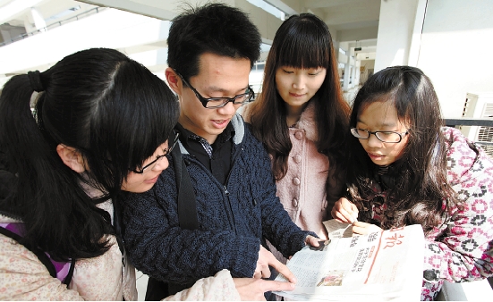 图为湖州师范学院的同学们正在学习徐建龙的感人事迹(原载浙江日报)。