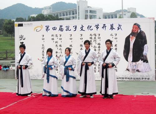 以孔子为代表的儒家文化经过2500多年的历史沉淀,已经是中国文化不可或缺的一个组成部分。我校孔子学堂自2007年成立以来,以普及和弘扬中国传统文化,促进文化融合和发展为己任,秉承“明德、求知、践行”的宗旨,“自主、进取、创新”的理念,培养学生以更加开放的姿态担负传承和传播优秀传统文化的重任,成为拥有深厚文化修养、坚定民族自信心和高度历史责任感的高素质人才。