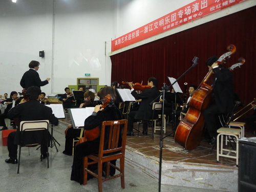 学校注重推进高雅艺术的普及活动。近日,浙江交响乐团走进我校,让学生体验到交响乐的艺术魅力,提高了学生的欣赏水平。