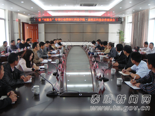 5月15至17日,省农副产品生化制造重点科技创新团队教授、博士一行10人赴温州泰顺县。通过实地考察服务企业、召开省双服务专项行动科技合作座谈会、行业发展谋划、科技讲座等形式,与地方科技系统、行业龙头企业开展全面合作,为地方企业和基层开展服务。省环保厅副厅长王以淼,泰顺县委书记张洪国,县长董旭斌及县委常委、副县长庄兴忠,副县长张平,各局负责人等与我校科技创新团队一行进行了座谈交流和产业考察。团队首席专家毛建卫教授等作了“农副产品生化制造”主题报告,泰顺县有关局委办、各乡镇、各农业龙头企业的负责人共130余人参加了报告会。