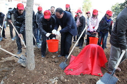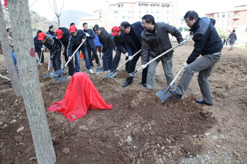 周国富等连续种下了银杏、桂花、香樟、红豆杉、浙樟、黄山栾树等近50株树木。周国富指出,植树造林对防风固沙、美化环境、应对气候变化具有十分重要的意义。各单位和公民个人都要积极开展种树植绿活动,既为子孙后代留下一笔宝贵财富,又为推进生态文明建设,为实现我省科学发展、和谐发展、转型发展贡献力量。他说,十年树木百年树人,教育系统尤其要把植树与育人紧密结合起来,树立培养学生改善环境的意识和共建生态文明的责任感。