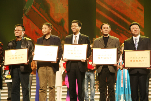 11月25日晚,“青春与梦想——2010浙江省大学生舞蹈节”闭幕,颁奖晚会在浙江省人民大会堂隆重举行。我校红蜻蜓艺术团成绩喜人,群舞《钱江潮涌》获男子群舞表演一等奖、优秀创作奖,并作为大赛15个节目之一参加了当晚汇报演出;《那年风车》获得双人舞表演二等奖;《玩偶》获得独舞三等奖。施芳芳老师获优秀指导教师称号,我校获优秀组织奖。校党委副书记陈根芳及团委负责人出席参加了颁奖晚会。