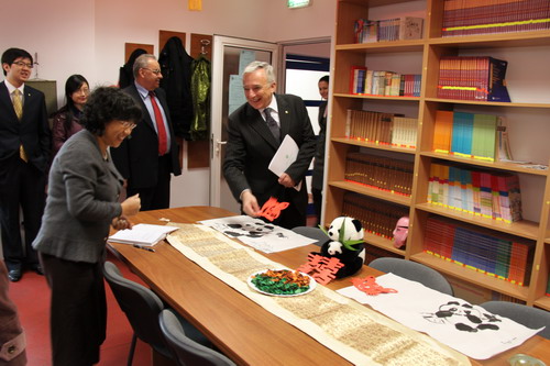 另,11月12日,正在参加巴比什•波雅依大学经济学院90周年院庆活动的罗马尼亚国家银行行长Mugur Isărescu 先生巴比什•波雅依大学校长Andrei Marga陪同下参观了孔子学院。